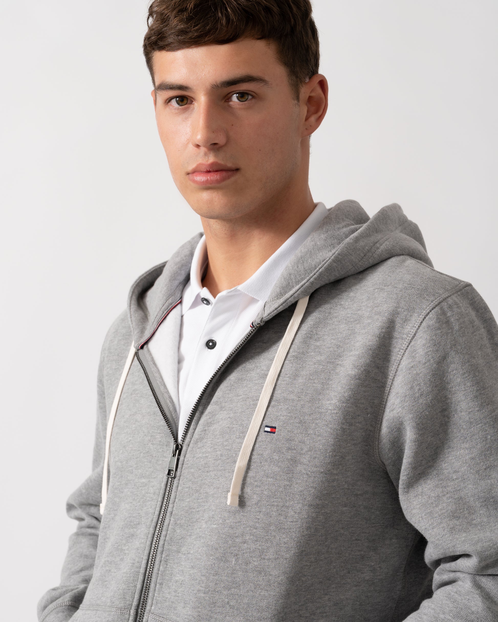Tommy Hilfiger Essential Fleece Mens Zip Hoodie in Medium Grey Heather