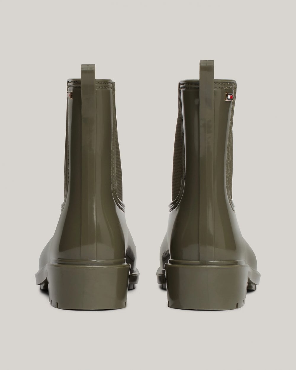 Tommy Hilfiger Flag Womens Chelsea Rainboots in Utility Olive