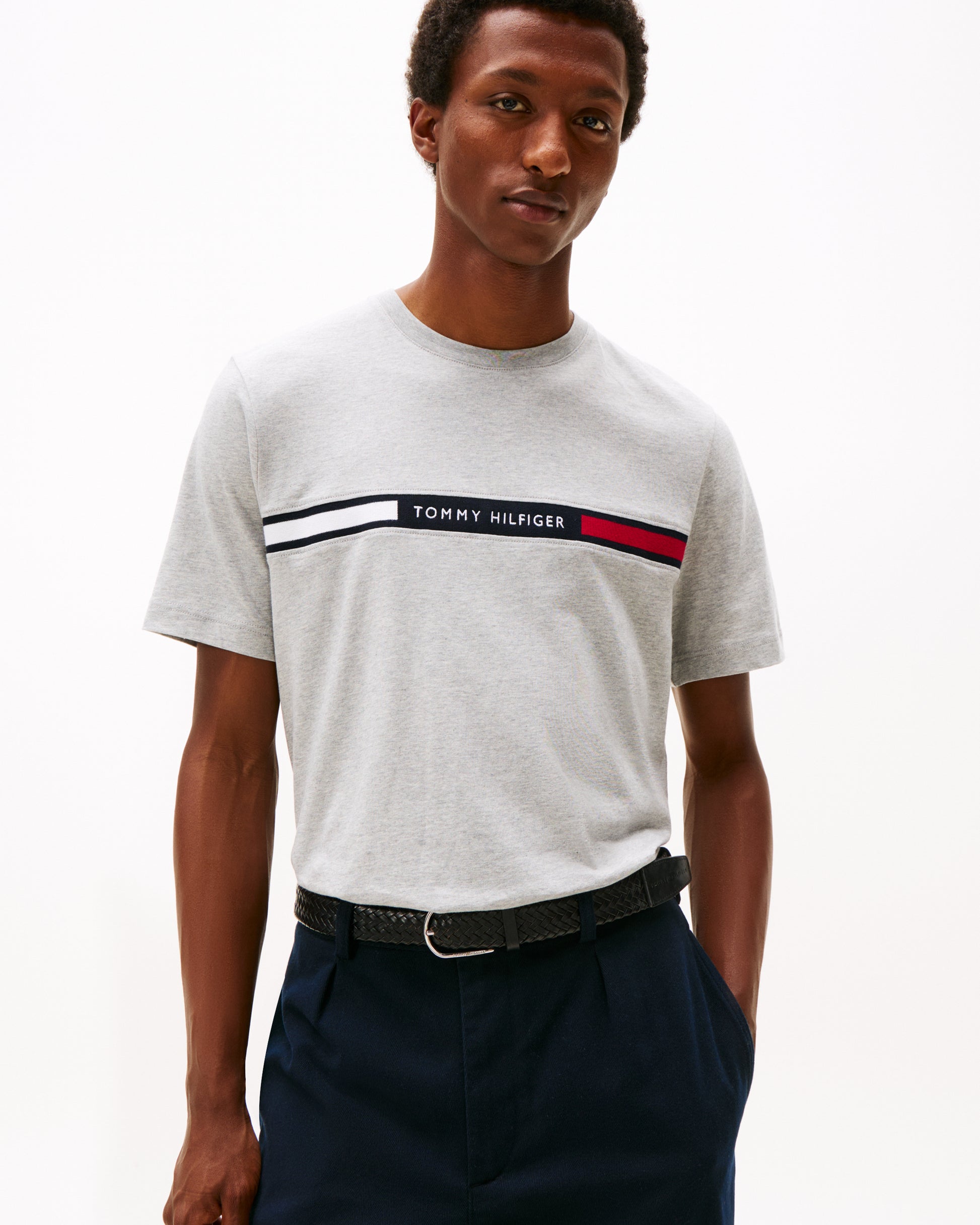 Tommy Hilfiger Hilfiger Chest Insert Mens T-Shirt in Light Grey Heather
