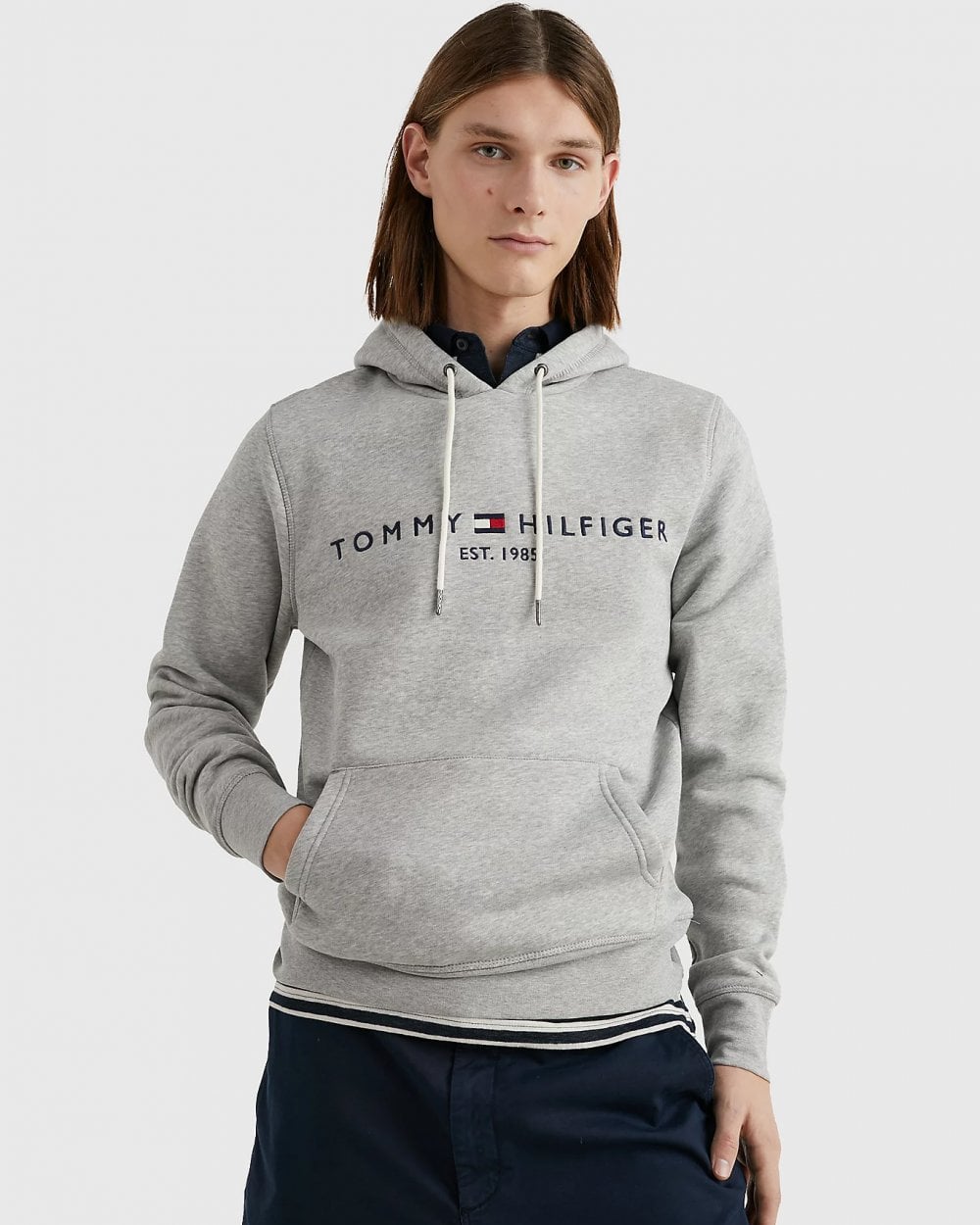 Mens Core Tommy Logo Hoodie - Cloud Heather