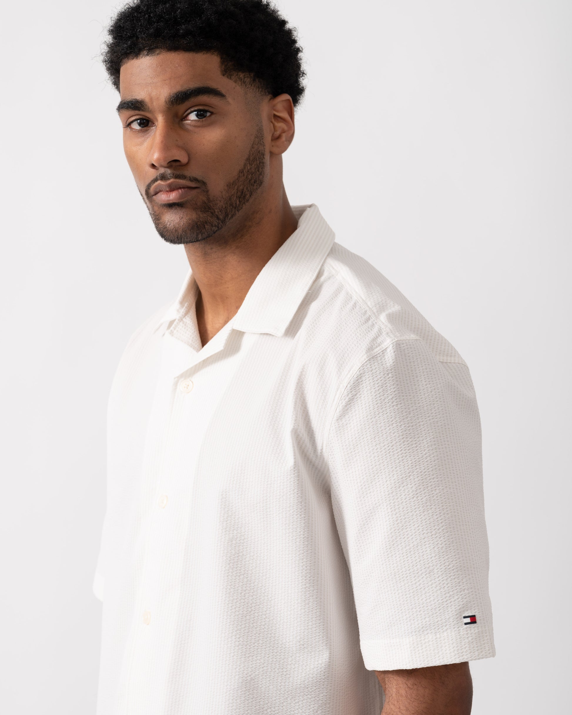 Discover designer mens short sleeve shirts with Tommy Hilfiger's Performance Seersucker Mens Short Sleeve Shirt in Ivory Petal/Ecru Stripe