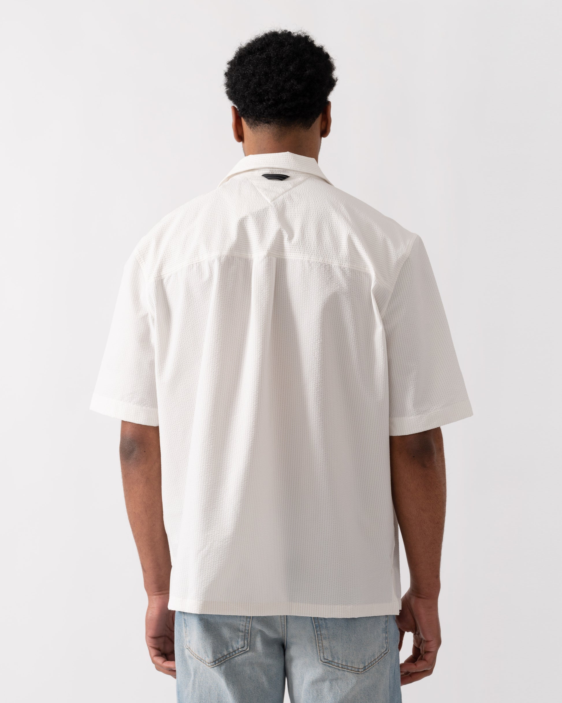 Performance Seersucker Mens Short Sleeve Shirt - Ivory Petal/Ecru Stripe