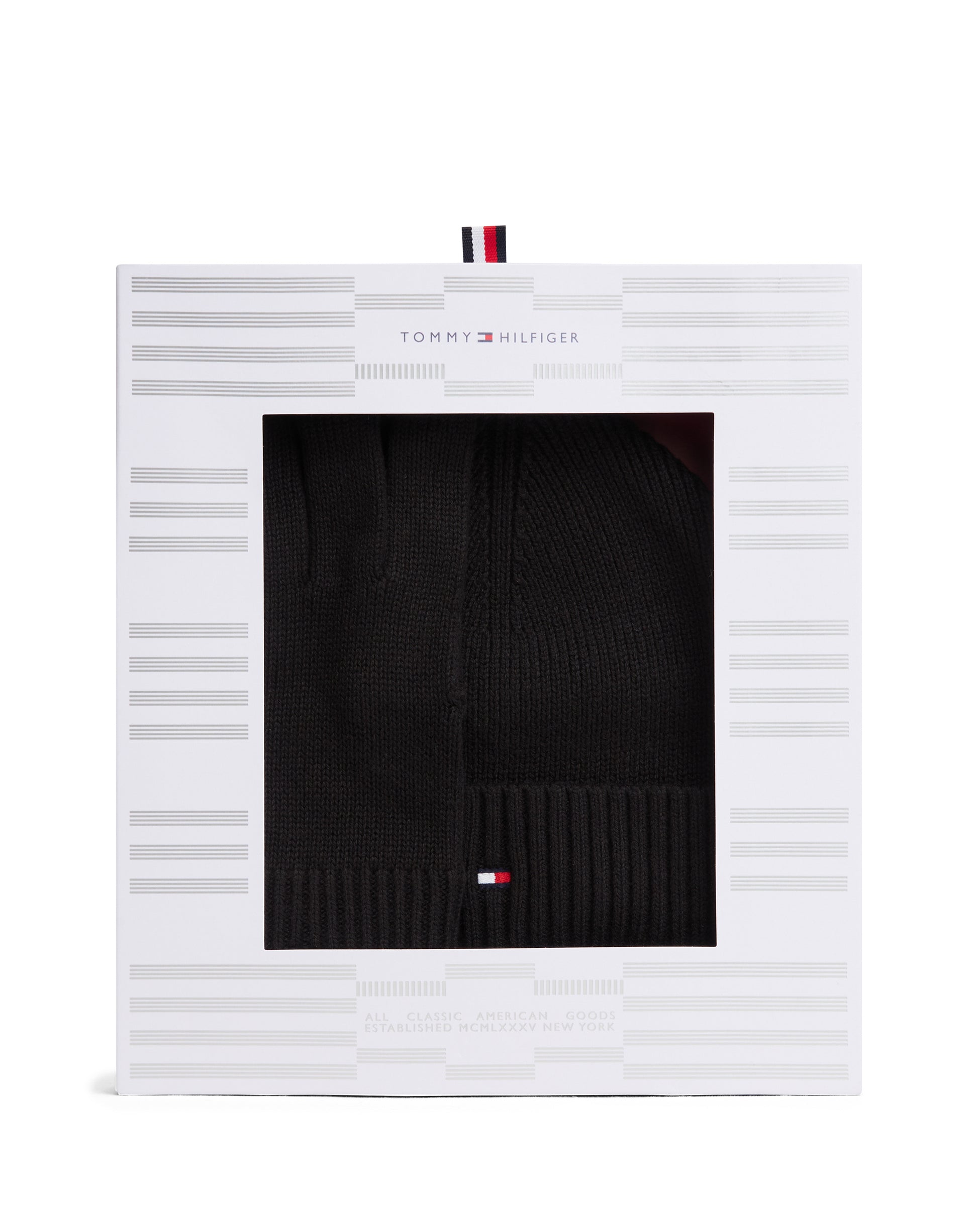 Tommy Hilfiger TH Flag Mens Beanie & Glove Gift Set in Black
