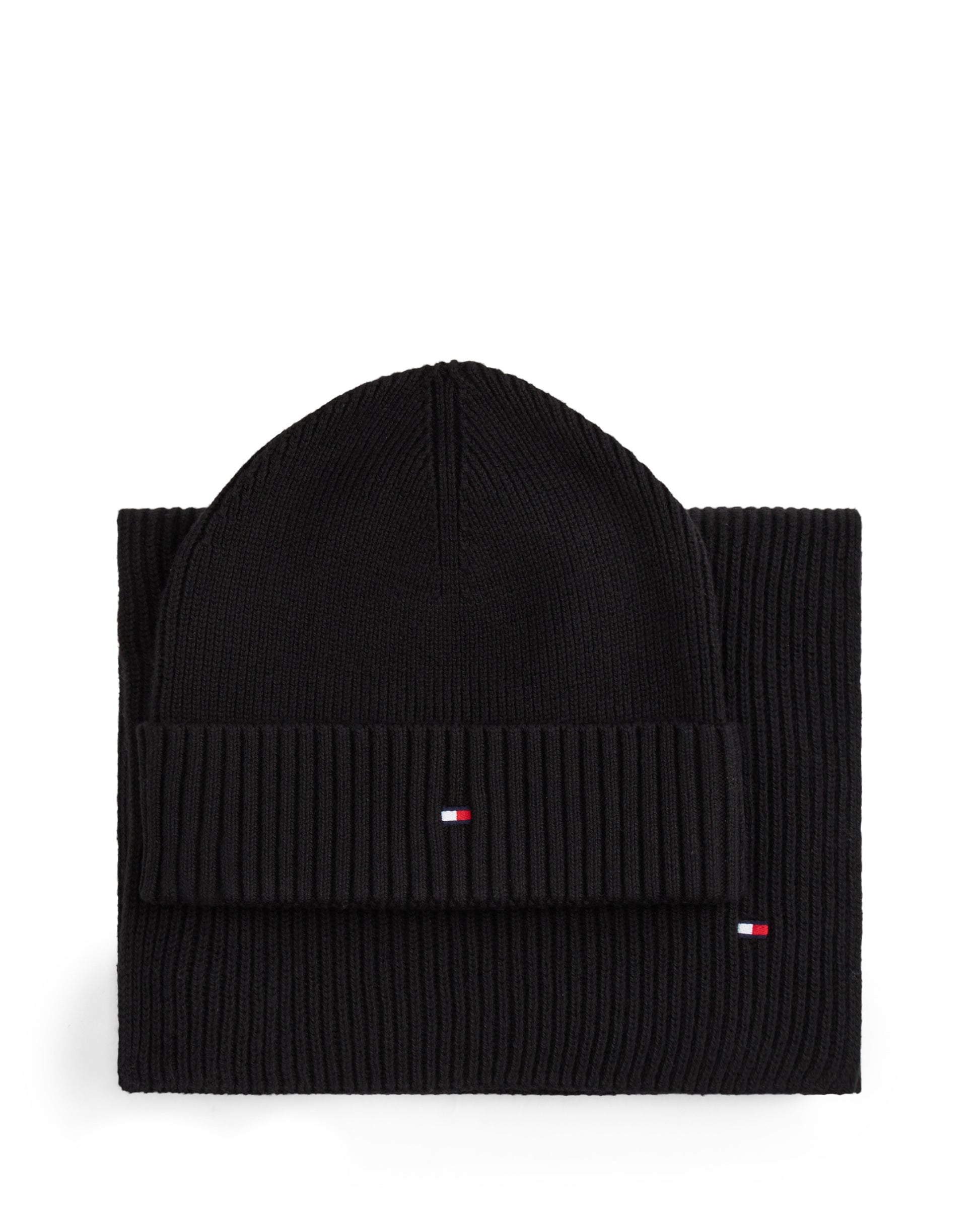 Tommy Hilfiger TH Flag Mens Beanie & Scarf Gift Set in Black