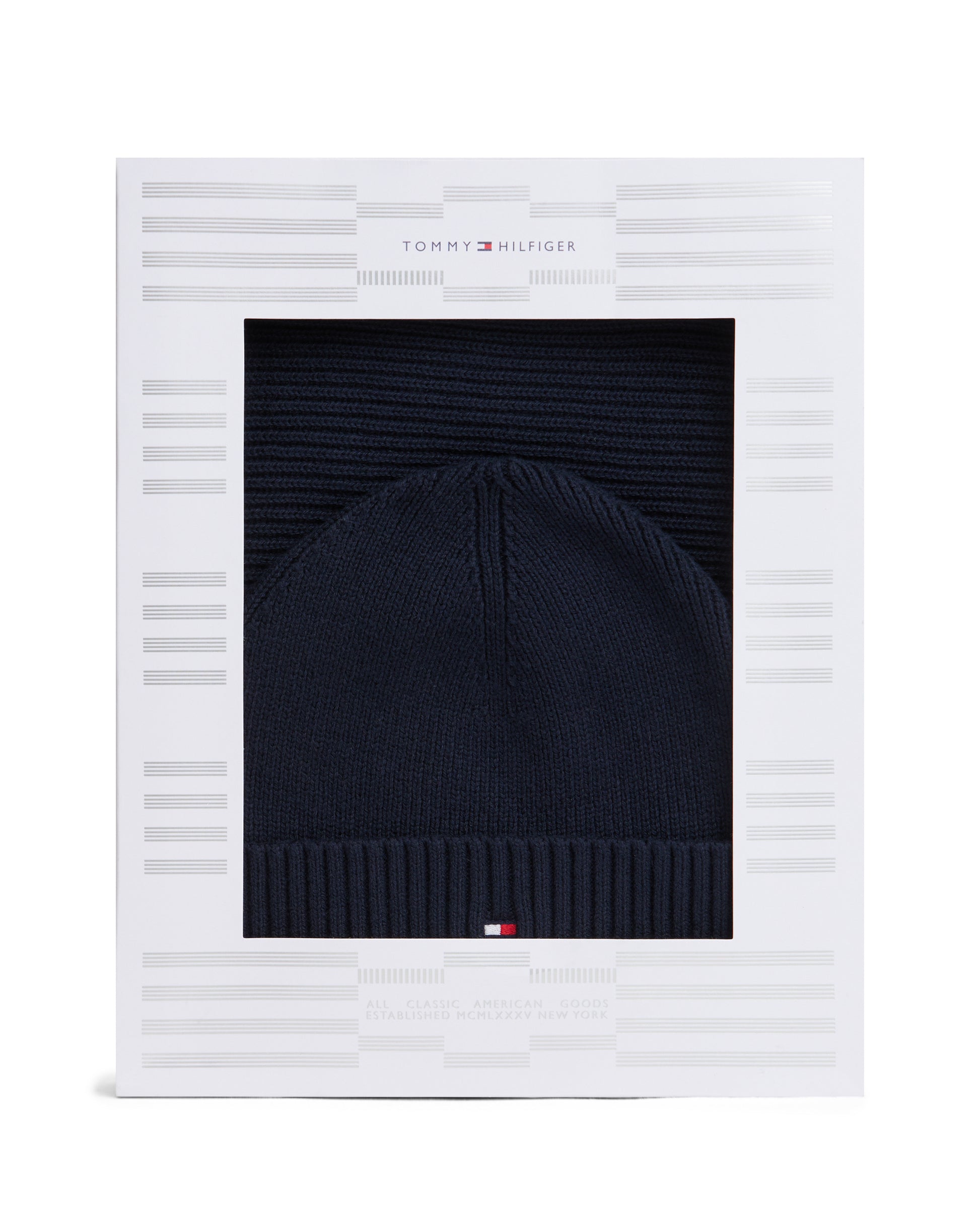 Tommy Hilfiger TH Flag Mens Beanie & Scarf Gift Set in Space Blue
