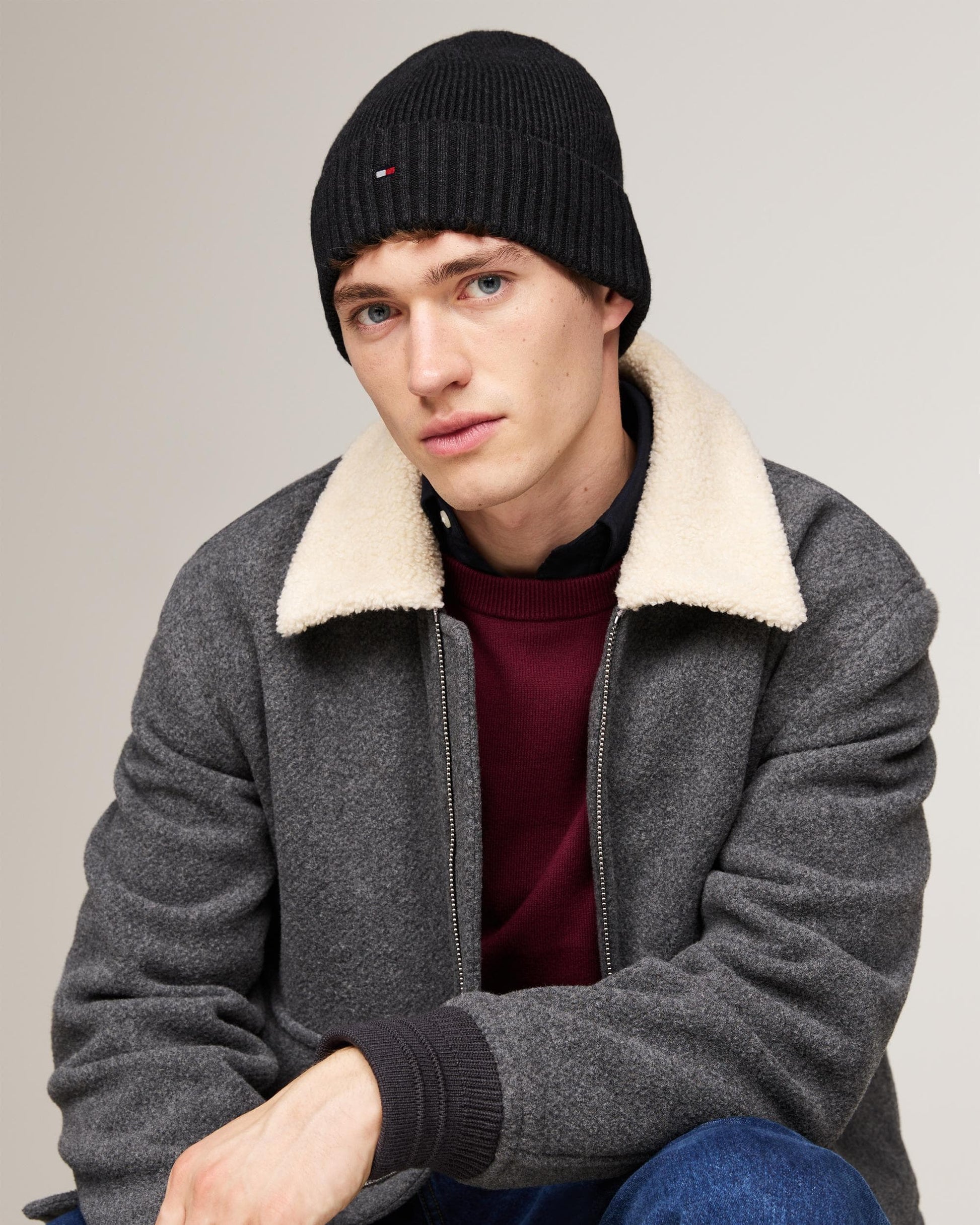 Tommy Hilfiger TH Flag Mens Pima Cotton Beanie - Black - Black