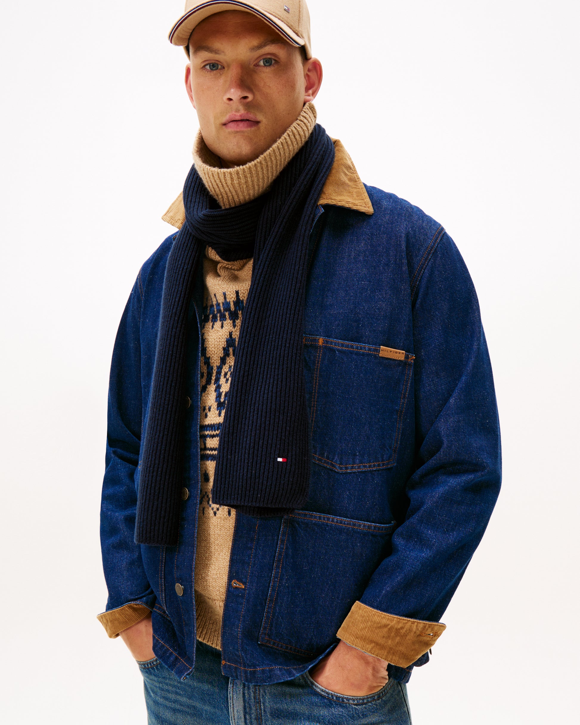 Tommy Hilfiger TH Flag Mens Pima Cotton Scarf in Space Blue