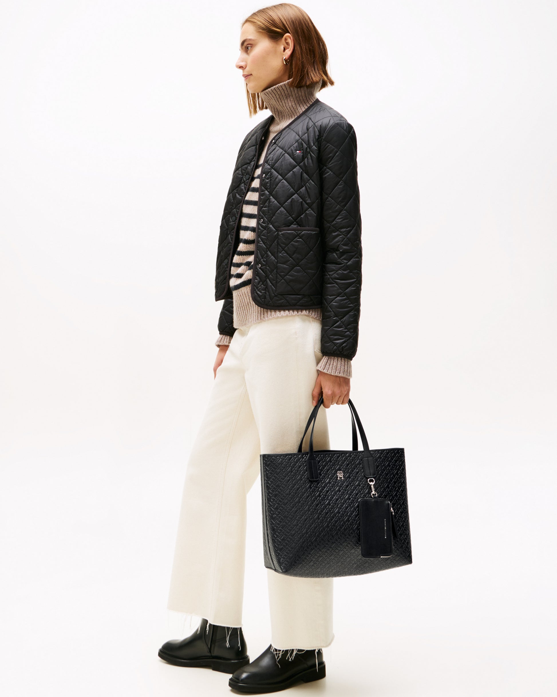 Tommy Hilfiger TH Icon Mono Womens Satchel Handbag in Black