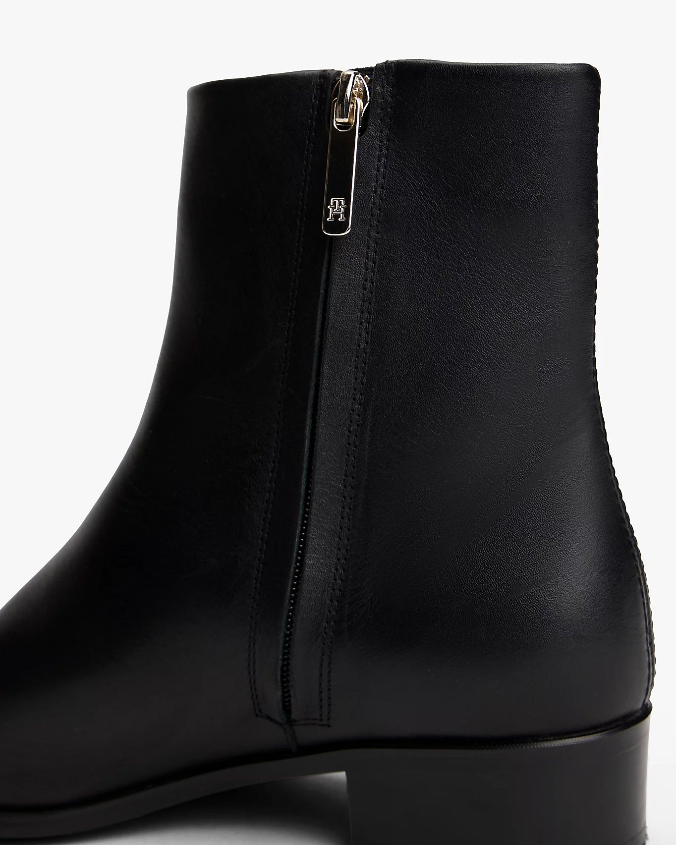 Tommy Hilfiger TH Leather Pointy Womens Zipped Booties in Black