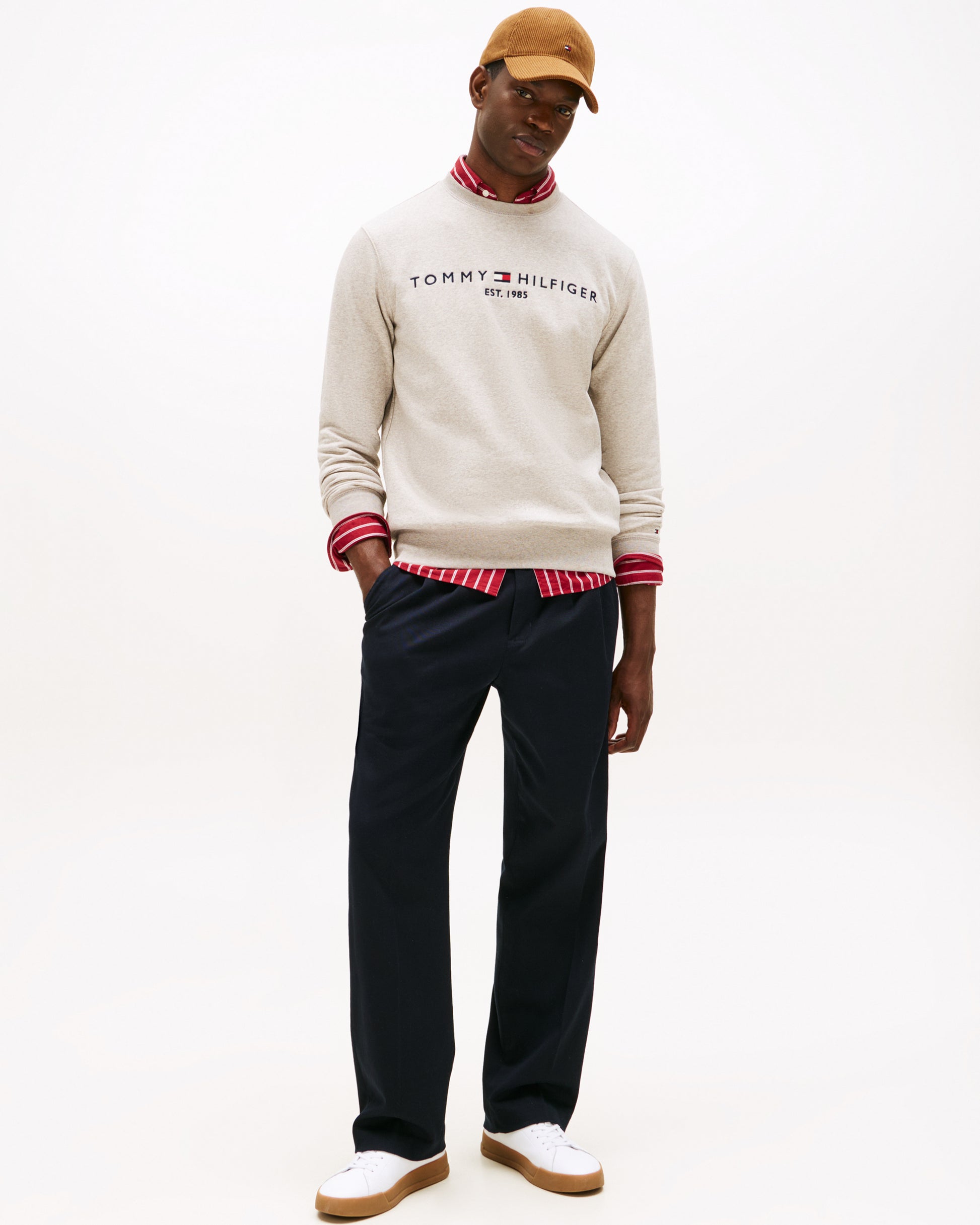 Tommy Hilfiger Tommy Logo Mens Sweatshirt in Heathered Pebble