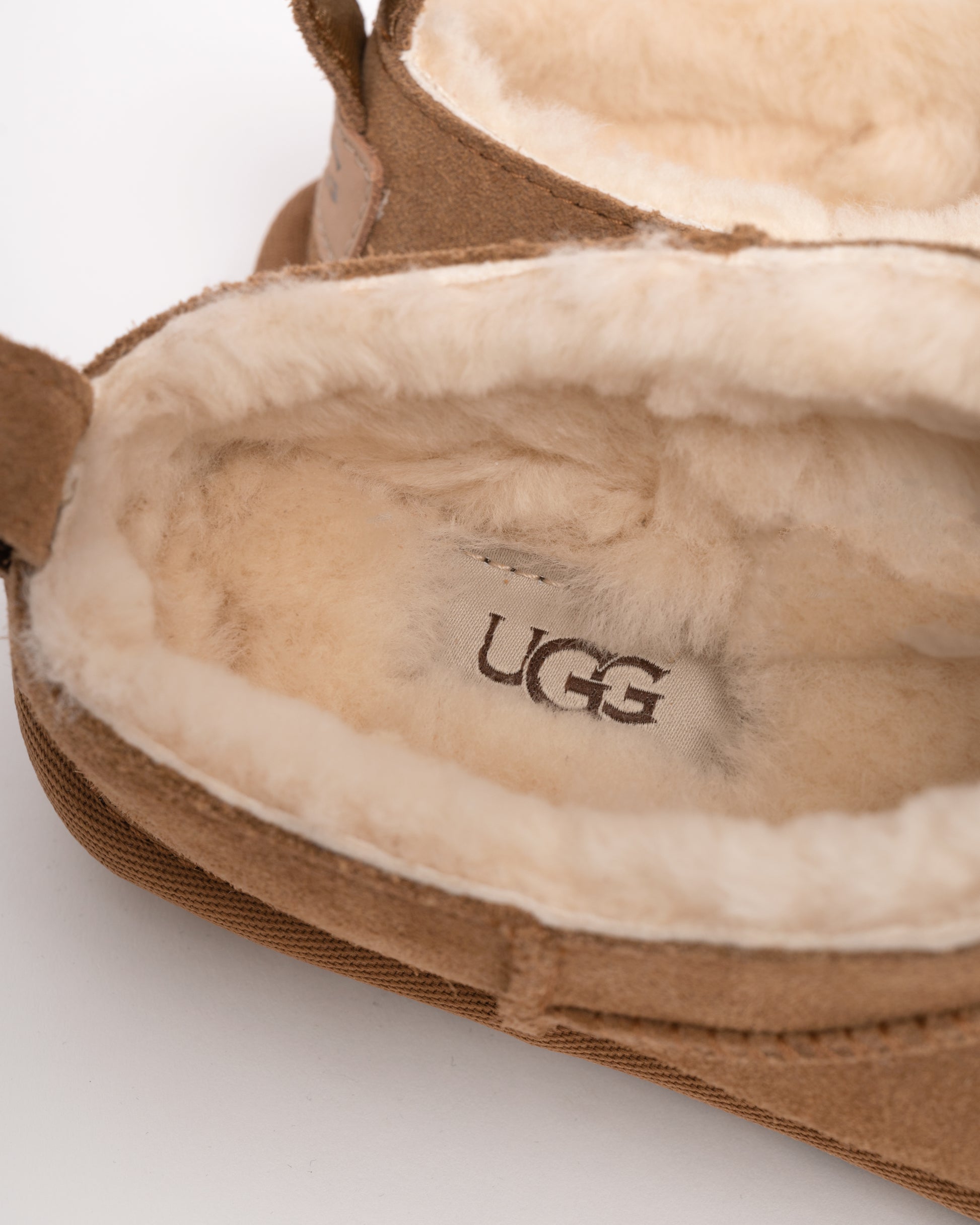 - Woven label with The UGG® Logo on insole, The UGG® Logo embossed leather heel label