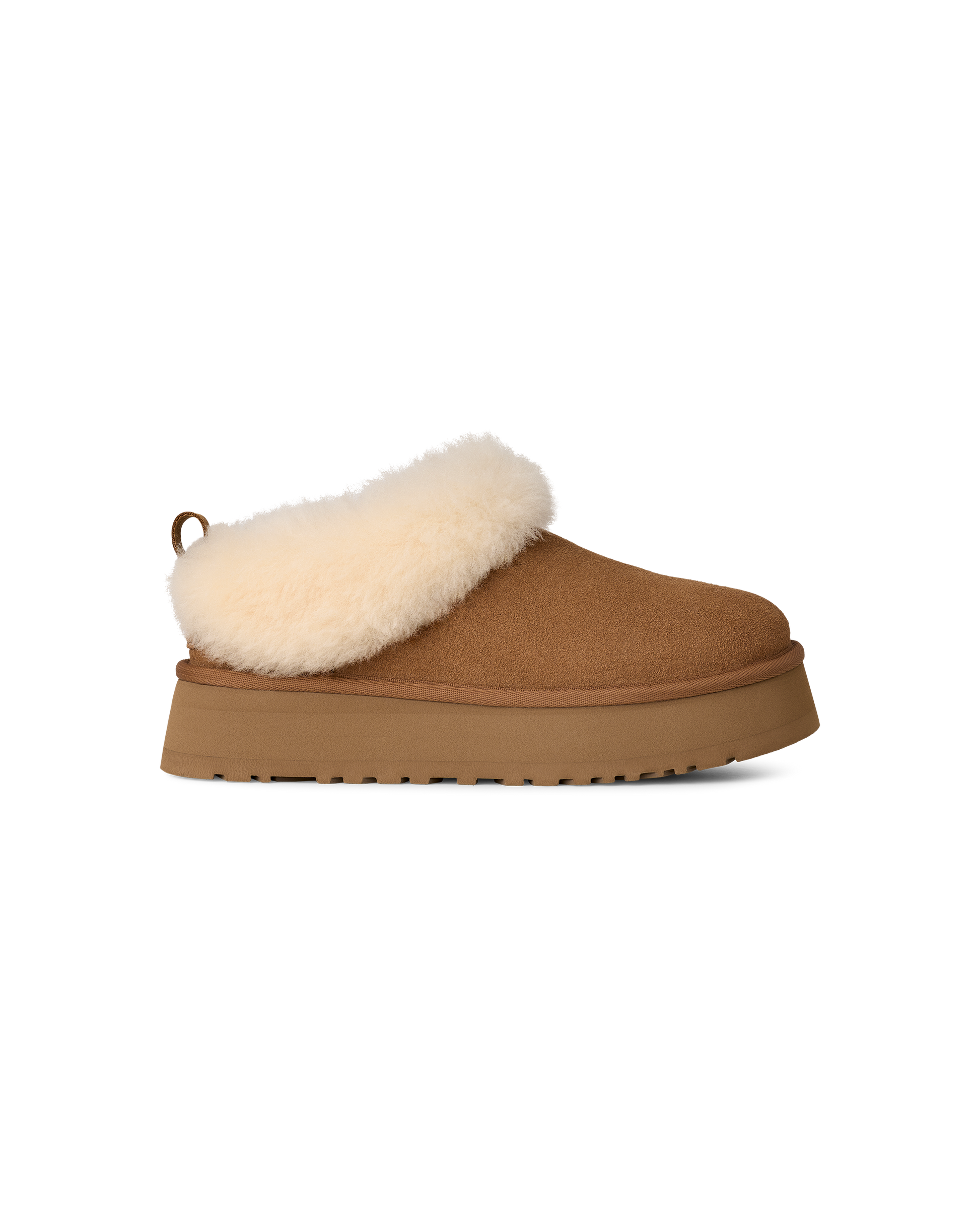 Love the Tazz but want even more UGG® coziness? Our Tazzelle is the one for you. This ultra-plush indoor-outdoor slipper features genuine suede and a lightweight 1.75" platform made from springy sugarcane EVA. Sheepskin lines the interior and continues onto the lush fixed cuff, so you can wear these with socks, or without.