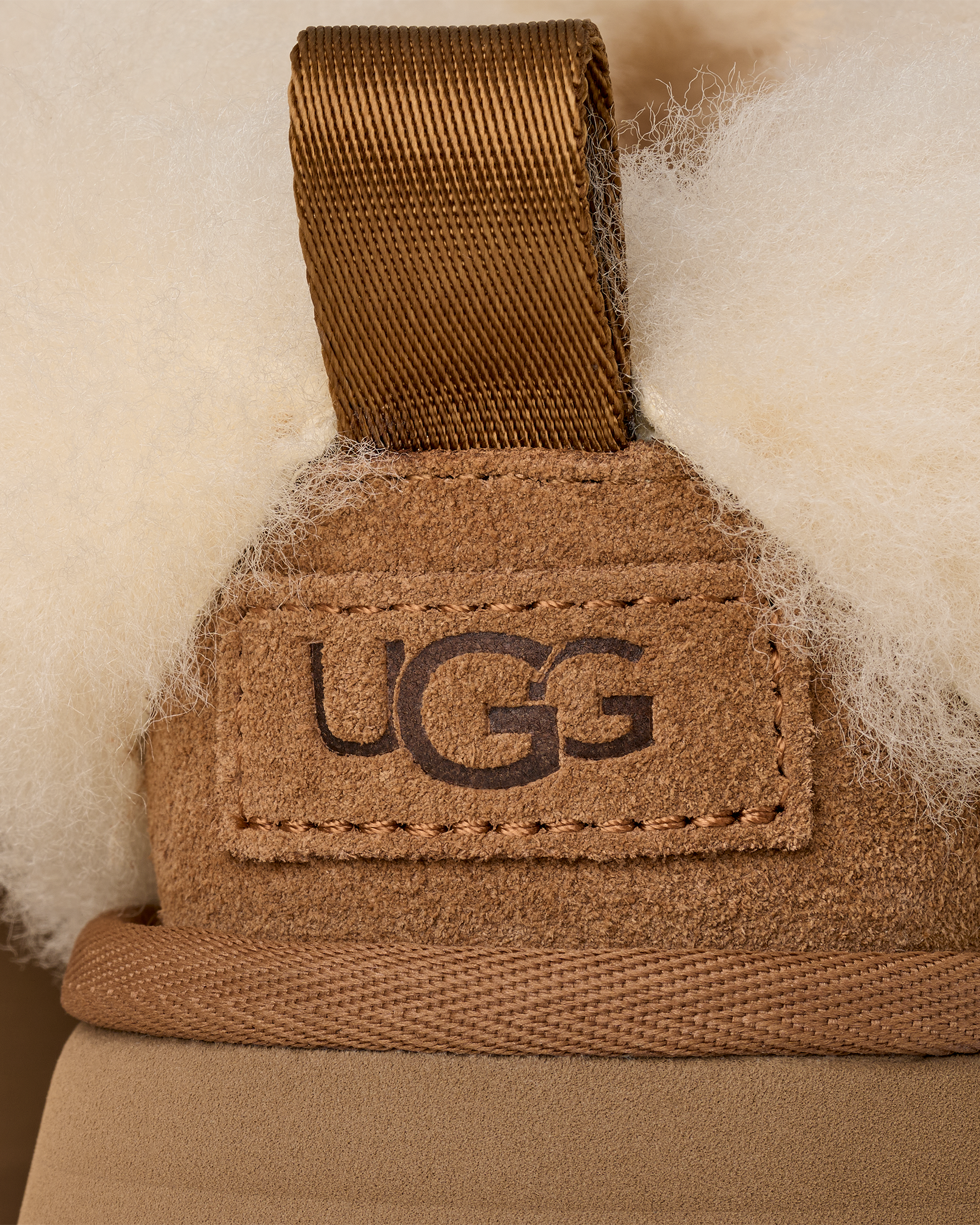 - The UGG® Logo embossed suede heel label